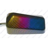 Rétroviseur scooter F1 réversible, tige noire, coloris carbone tricolore bleu/rouge/jaune